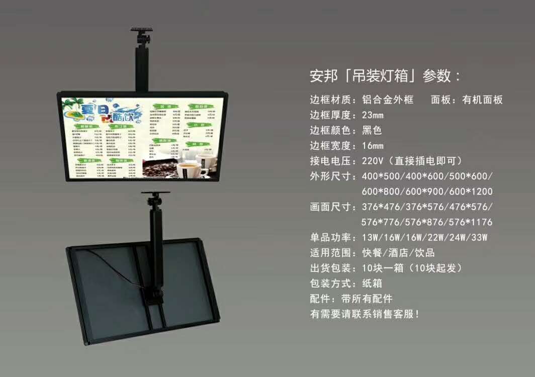 產品用途超薄節能燈箱主要適用范圍:廣告媒體、墻面裝飾宣傳、室內外指示牌……